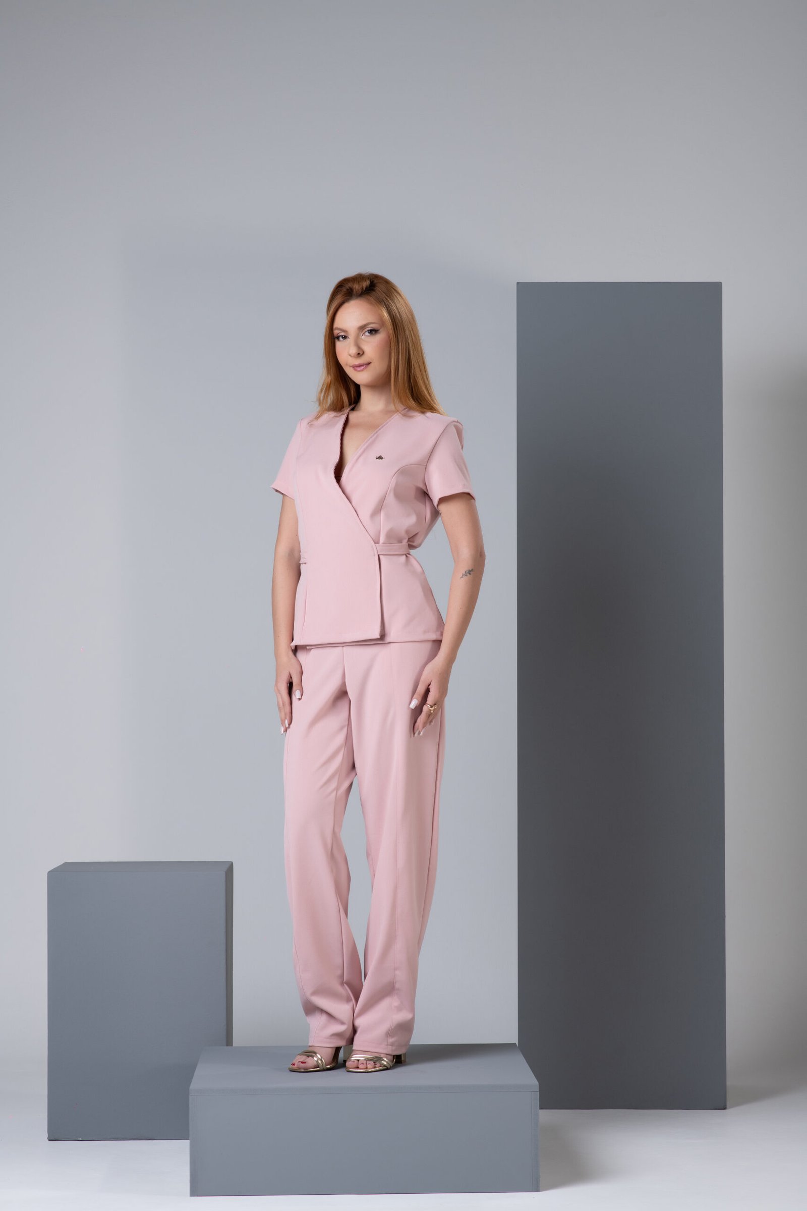 Conjunto Transpassado New Verona é confeccionado no tecido Armani Premium, um tecido com caimento leve, que contém elasticidade e um toque macio.